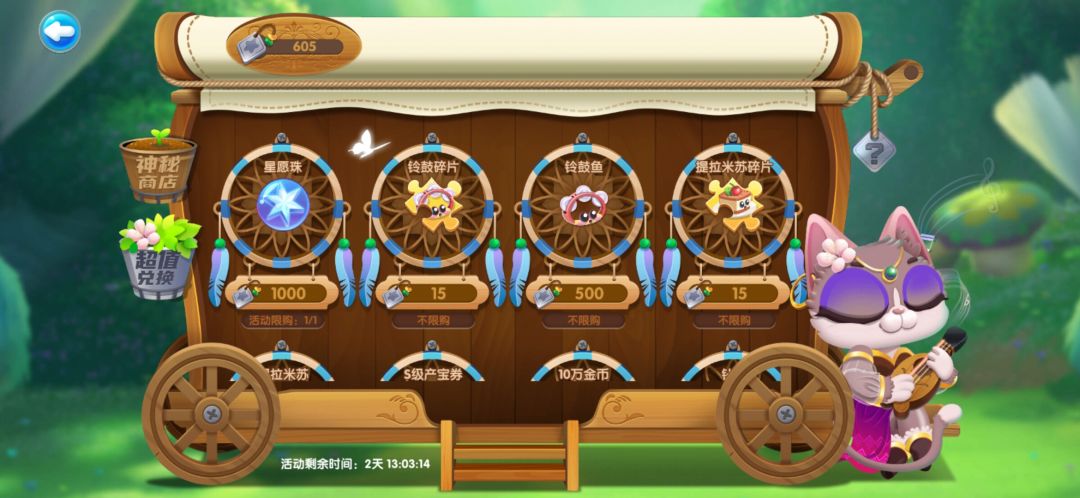📝假如鱼友觉得自己存够了银钿和碎片或者没钻石刷新页面,那就可以去超级兑换用银钿兑换物品了。