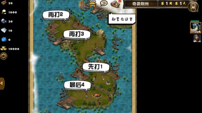 简单的说下第二次打的思路,开局先打1,再打4,再打3,最后打2,按照图上顺序打,记得剩1个兵左右,用青囊书或者太平清领道回血,打完4将,直接往上,地图的最上方靠右,打最后一个将赵累。打赵累前可以待机一天(便于读档),注意15回合内无损战斗算3星战斗。加强后,这关还是有难度了(再一次鄙视那些说过图简单的喷子)具体赵累的详细打法请看下面。。。。