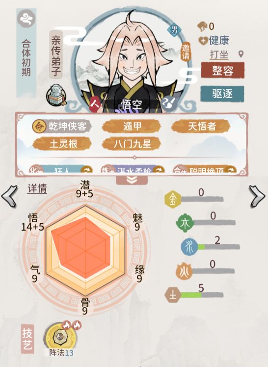 后期搞的时候有个小技巧,就是先让角色到了合体或者是大乘吃完属性丹之后传功给别人,再升级到要上场的境界,就可以比同境界多一些属性,但是所花精力会很多,自行斟酌。
