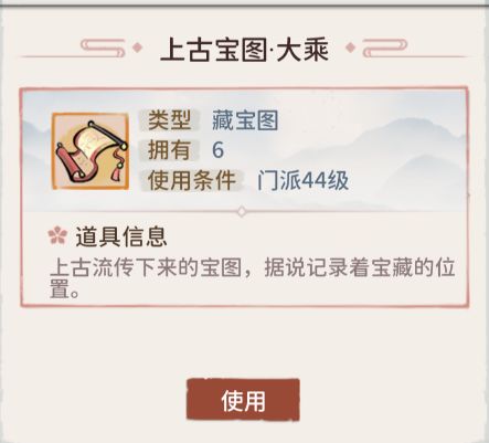 资源丰富,但因为内容随机,所以要求不一样,如果不能每种都可以打就不要去开,先攒着,藏宝图部分内容会对阵法技艺有要求,而且还蛮高。藏宝图获取主要是3个月一次的会客,藏宝图等级与你当前门派等级相关,高等级获取资源也会更多,但难度也会提升。
