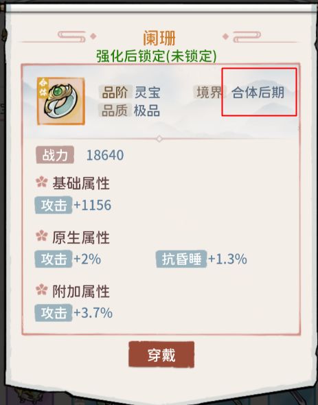 注意这两件装备的佩戴境界要求和其他装备不一样哦,自己做的或者是去买的时候可要注意看,我买的到现在还用不了