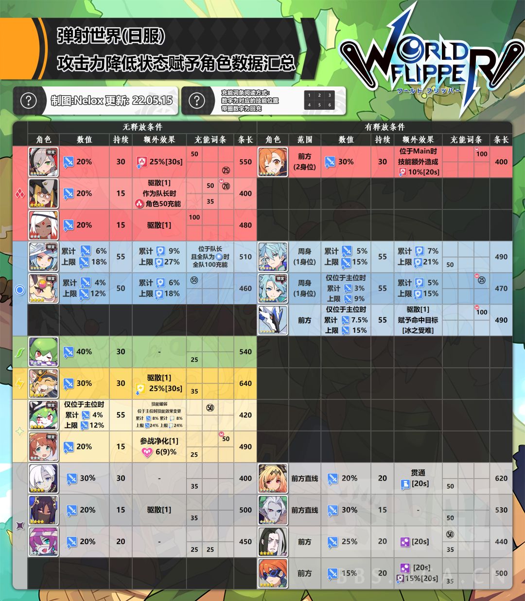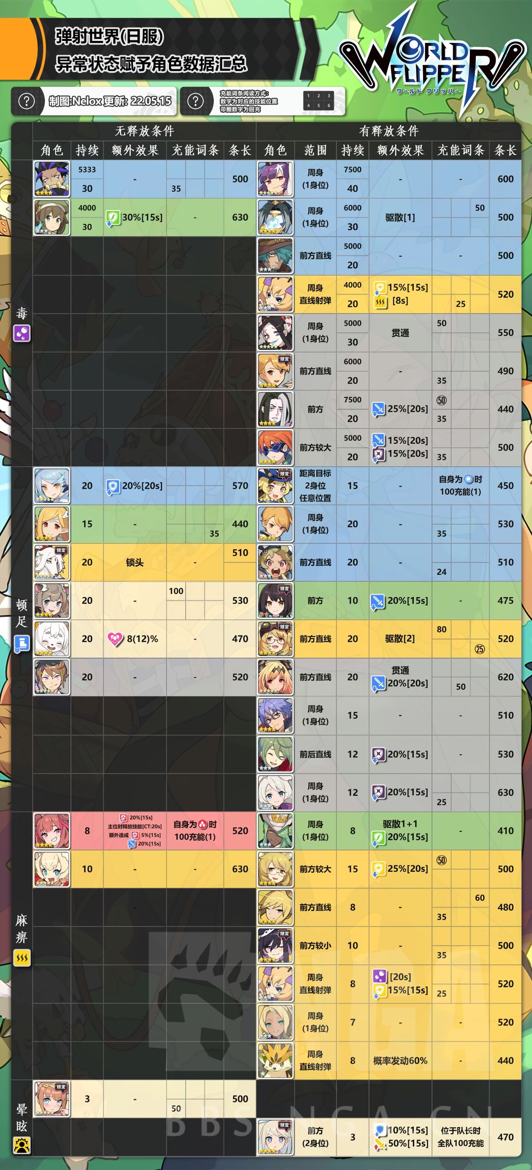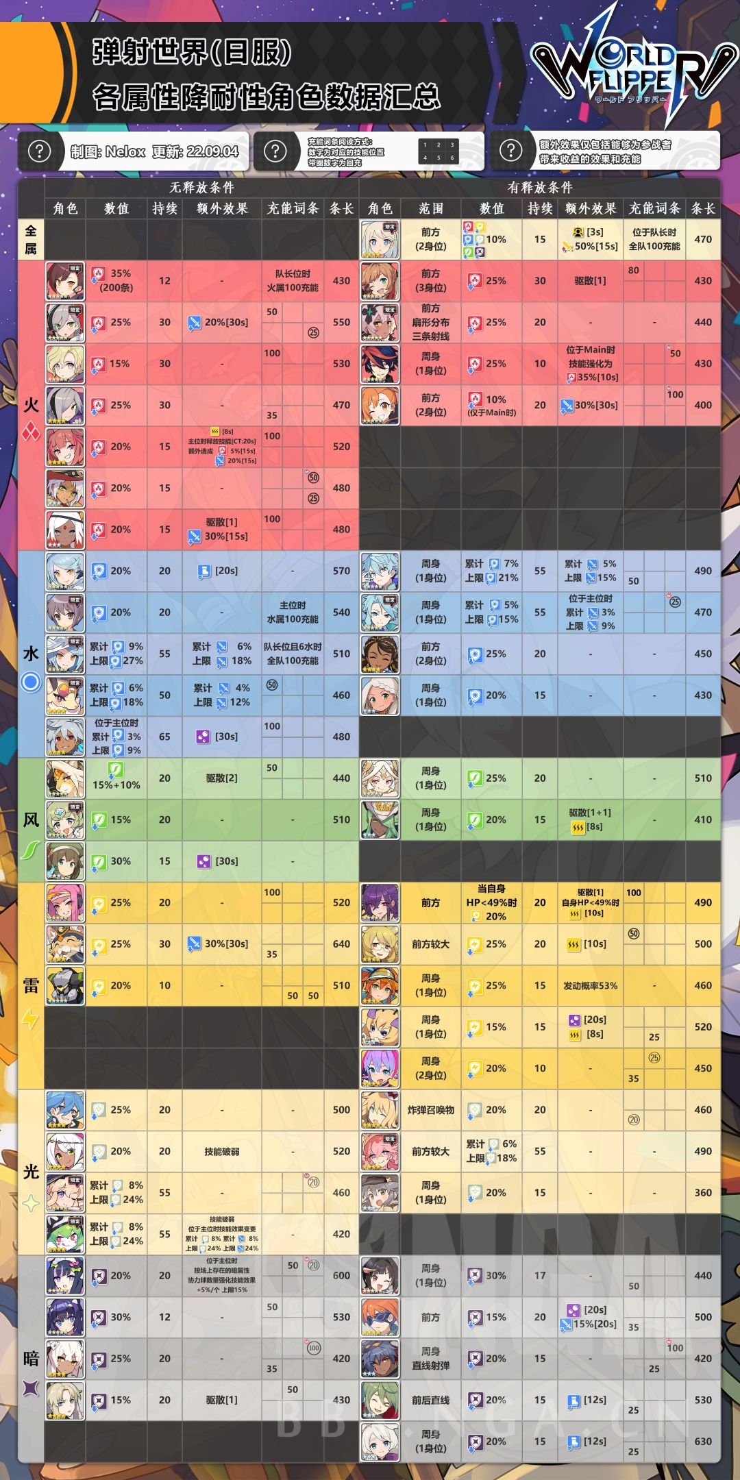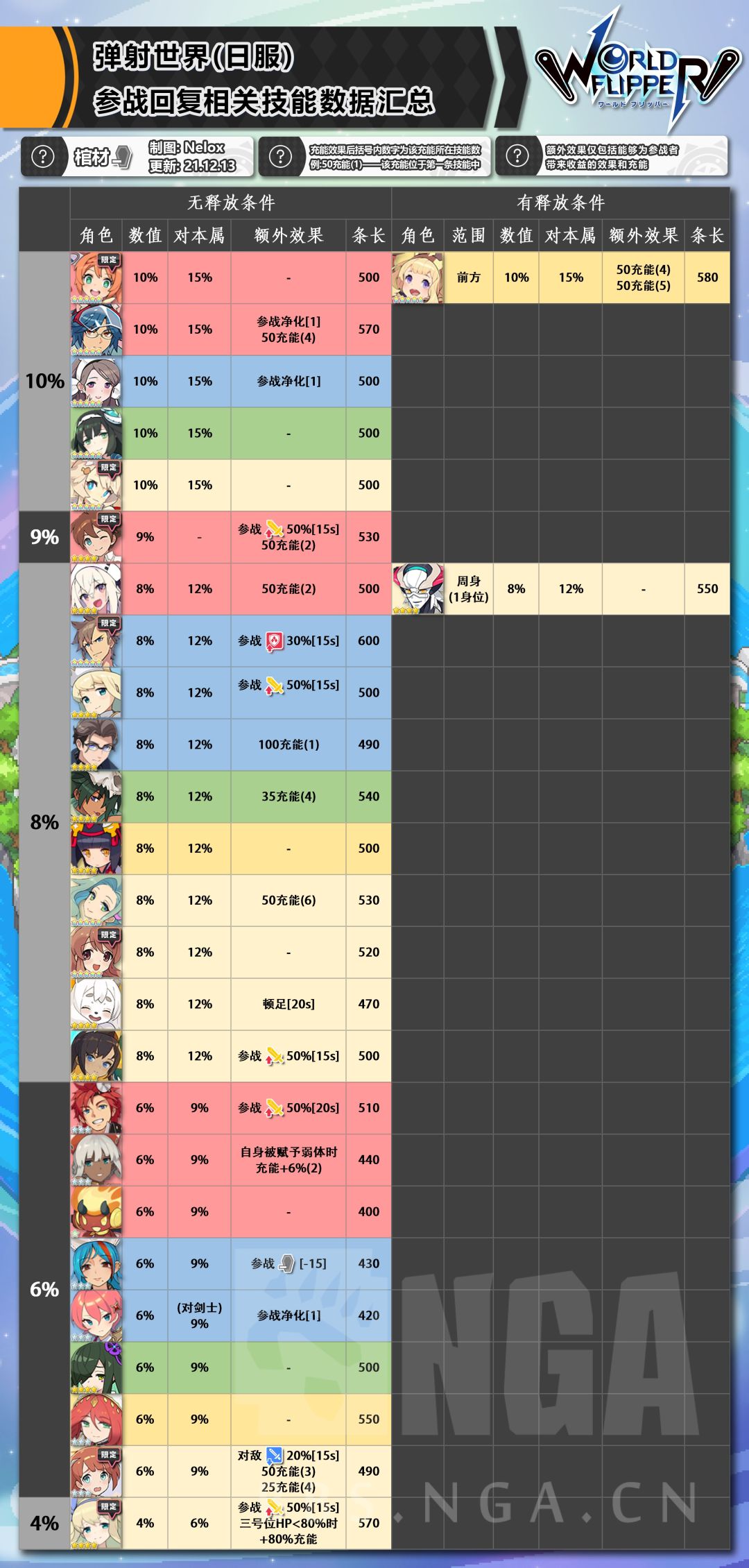 所以最终方向为整理所有技能能够使所有参战者收益(参战奶、攻刃、净化/降耐、驱散)的角色。