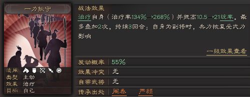 作为一个辅助,状态的初始武力与成长较为不错,也可以携带输出战法来补一些伤害。统率也是比较高的,而且周泰的自带战法会受自身统率影响。而智力与速度方面就比较一般了。