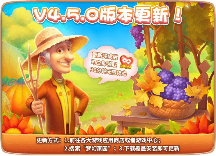 记得前往最初下载“梦幻家园”的渠道下载新版本游戏~