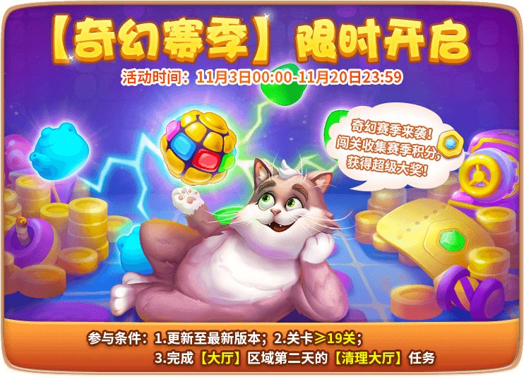 活动玩法:“道具短赛季”活动限时开启,常规关卡及冠军赛关卡均参与活动,活动期间,成功闯关即可获得积分,累计积分可提升活动等级,每个等级均有奖品领取哟~两段赛季接力开启,让你一次玩个够!