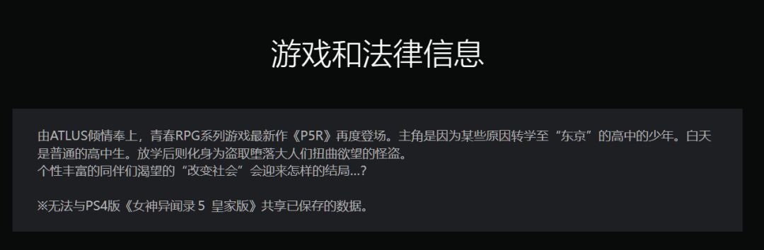《P5R》PS5版商店页面上线 不支持PS4存档继承