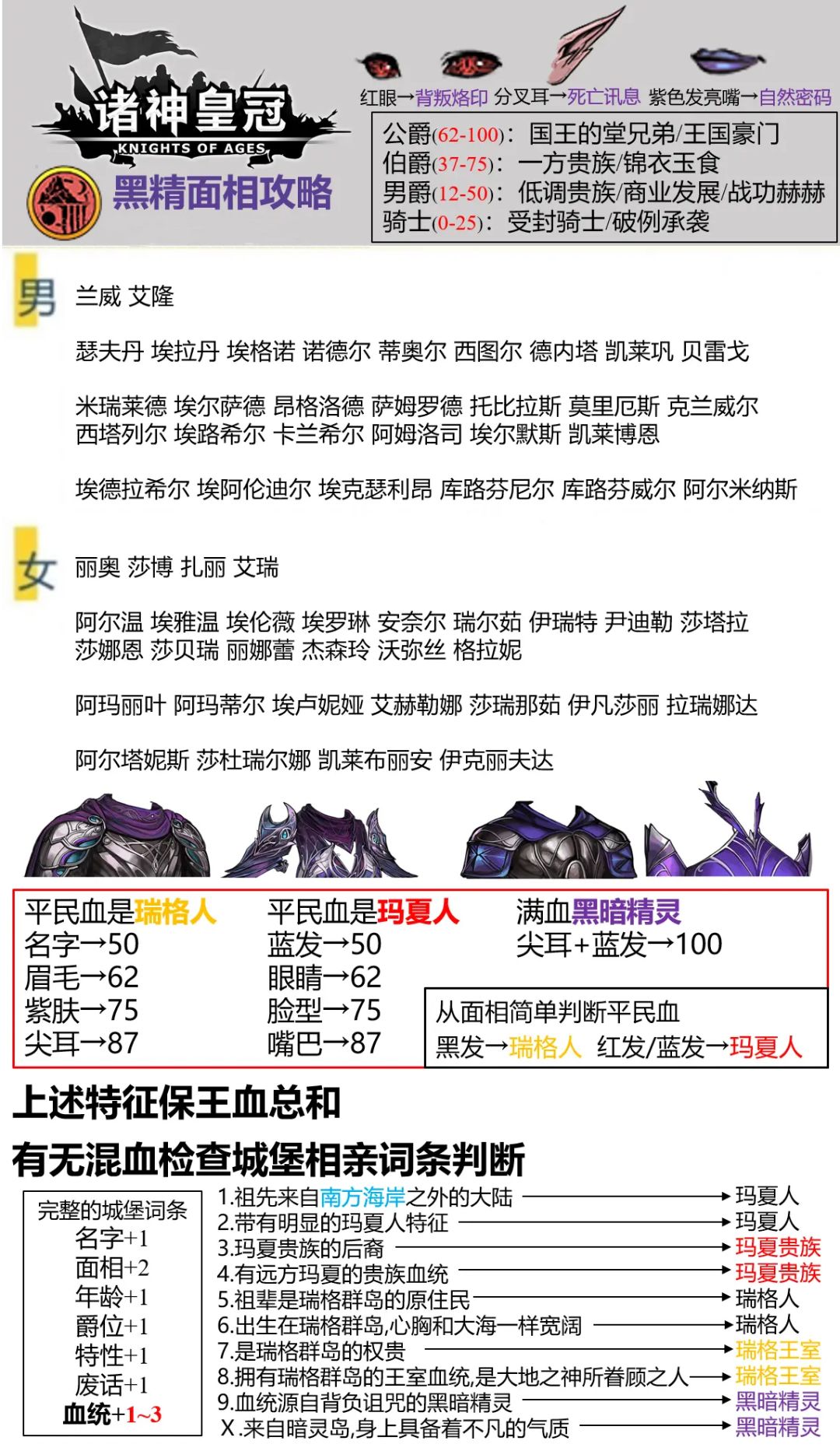 3种王血:瑞格王室、玛夏贵族、黑暗精灵