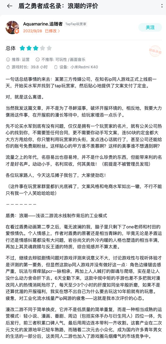 评价君:本评价深度剖析了盾勇背后的工业模式,立足于游戏的生产背景,赋予了游戏不可多得的视角论点!并提出了鼓舞游戏进行原创开发的建议及深入玩家肺腑的呐喊宣言,不得不说是评价中的一股”清流“啊。![[嗒啦啦4_瑟瑟发抖]](https://img.tapimg.com/market/images/e1d7088cac53bbf4280b0c019b020da8.gif)