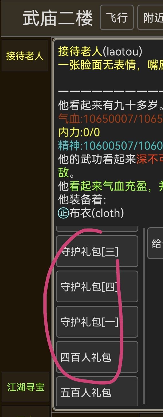 其他给有很多很好的点,比如永久扫荡,吃密藏随机得属性丹,各种职业,至高武学,热心老玩家收徒和帮新人,至高武功商城等等。。。。这几天满两月又给了三个礼包。。