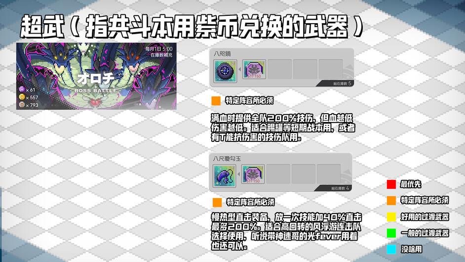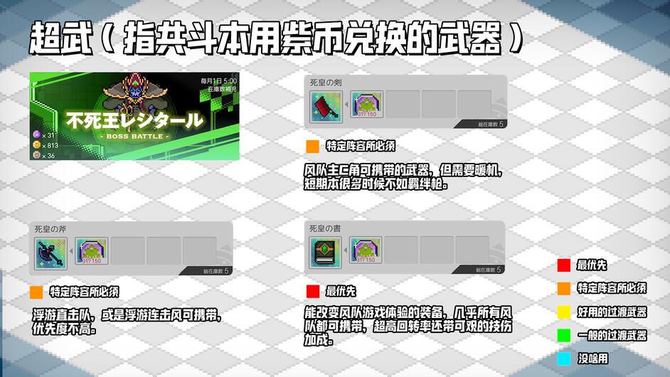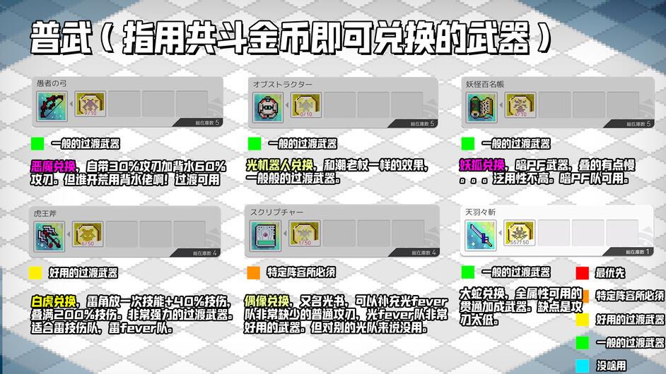 活动武器基本都要拿满,不然只能等复刻或者商店更新(=_=)
