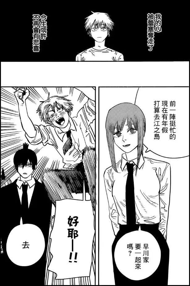 自此之后,电次就成为一个既非恶魔也非人类的存在,也就是“电锯人”。