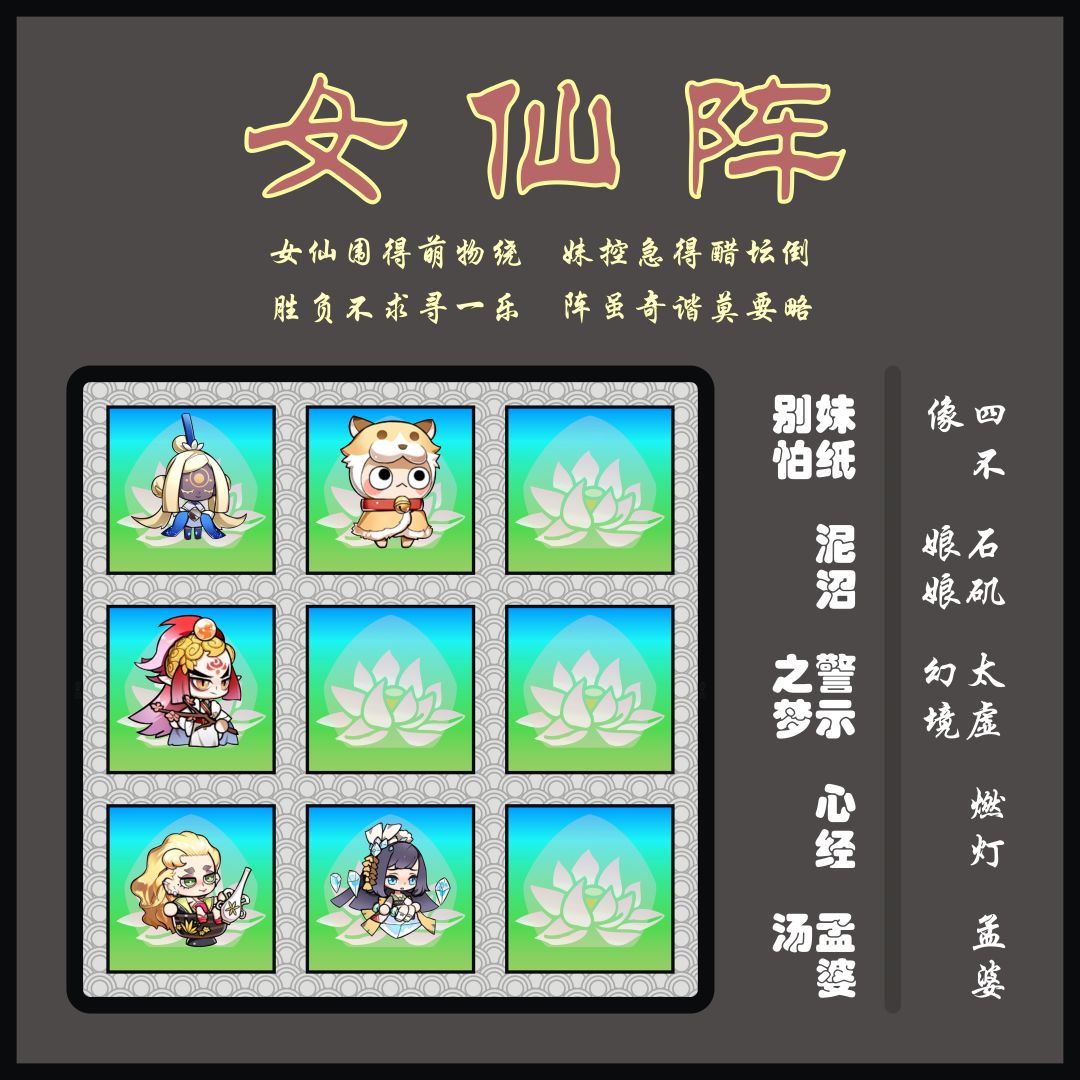 由于本次说的六个阵偏娱乐性质,而且大多都有现版本没有的伏羲、元气娘、孙悟空,所以就一起来简单说一说吧。
