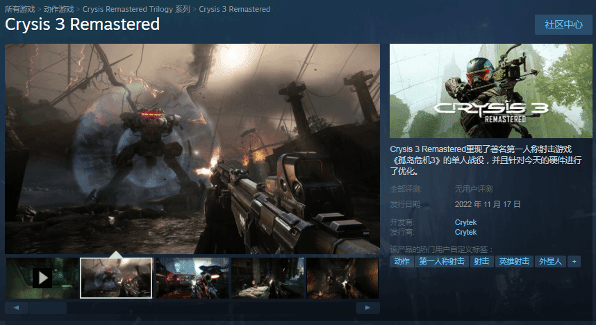 《孤岛危机2:复刻版》和《孤岛危机3:复刻版》Steam页面现已上线,将于11月17日正式推出,感兴趣的玩家可以提前加入愿望单。