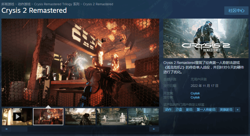 《孤岛危机2/3RE》11月7日登陆Steam 商店页面上线