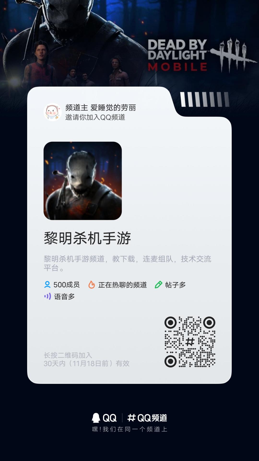 《黎明杀机手游》QQ频道欢迎各位想要下载安装、连麦发车、技术交流以及交友娱乐的雾中人加入我们!