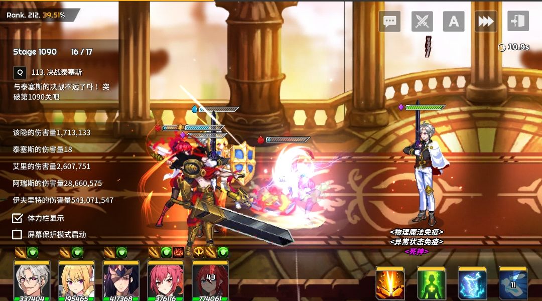 目前1000+层,千层开始小怪概率可以直接灭队了(毕竟设置了到boss处开大),但是boss照样可以秒,我主角是尽量拉满的,结果还是只能砍砍杂兵,打boss真就指不上,输出能超过1都不错了(因为很多都是物理免疫或者穿透免疫),之前我看到有人说主角带个奶就能打几乎所有关,我只能说,攻略害人啊,我试着用悠伊加主角,主角死亡时间推迟了一秒?悠伊倒是死的和法师一样快,哪怕防叠到破万也没用,照样死的快,我最后发现还是输出流猛,我说一下这个队