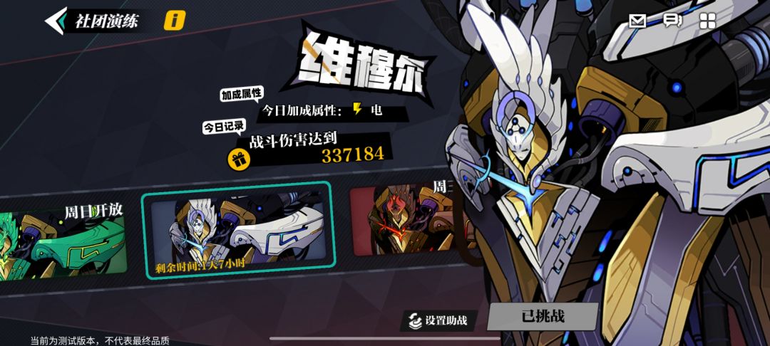 游戏的【社团】功能会随着主线任务的推进开放,【社团演练】类似于众所周知的每周副本,每周不同的时间段会有不同的BOSS开放挑战。挑战中,将有12位角色登场进行自动战斗,其中包含顾问们的6位以及助战的6位。打出符合战斗评级的高额伤害,即可领取大量“社团功勋”奖励,“社团功勋”奖励可用于【社团商店】换取相应游戏道具。