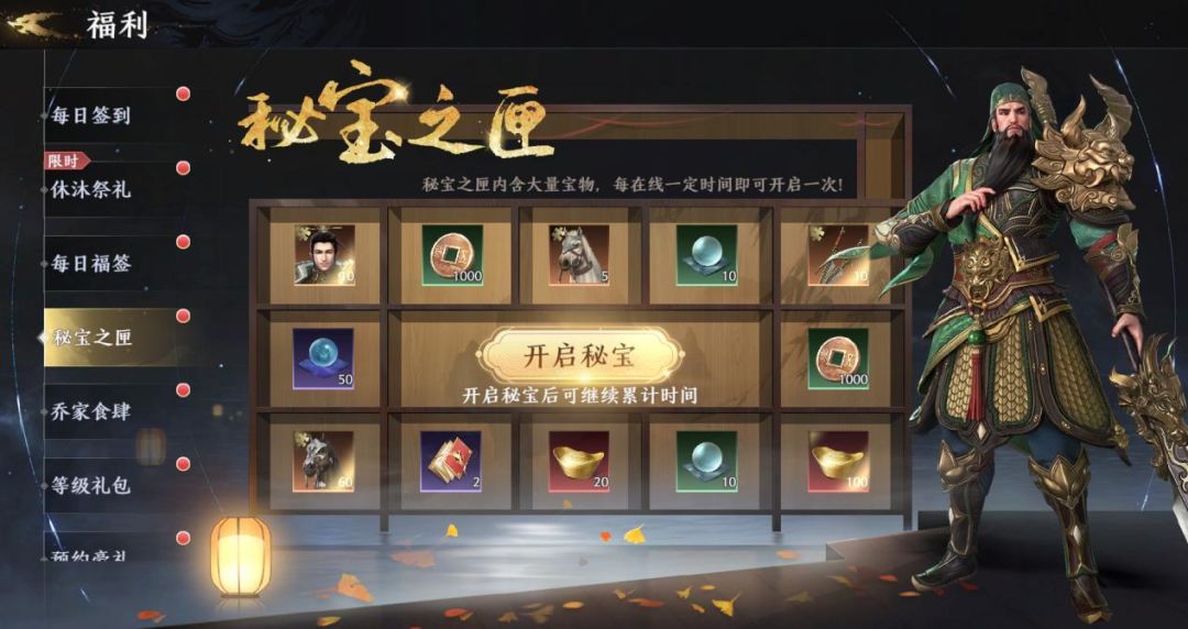 活动说明:公测开启后,将军登陆游戏后点击【福利】-【秘宝之匣】,累计在线时长即可领取橙马-乌孙、刘备碎片、经验丹、元宝等前期冲段必备好礼,将军准备好收入囊中了吗?