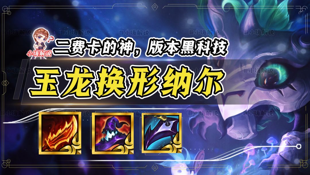 前言:大家好,我是小嗨。版本低费卡上分阵容除了卡尔玛、瑟提、永恩以外,还有一套新的冷门黑科技,就是纳尔。纳尔在新版本得到了大加强,今天给大家带来的是——玉龙换形纳尔。