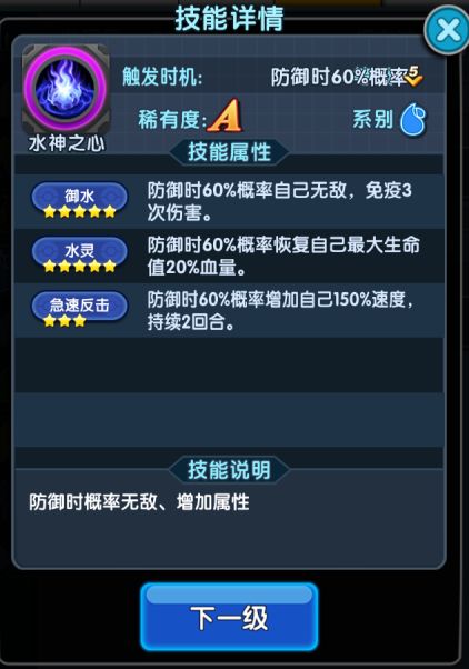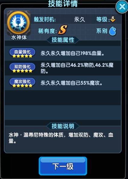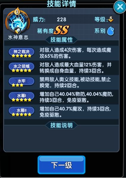 特别注意,水神为超进化宠物,进化需要所有羁绊满星,进化后将变成0星水神,羁绊需要重新养,所以不要盲目超进化