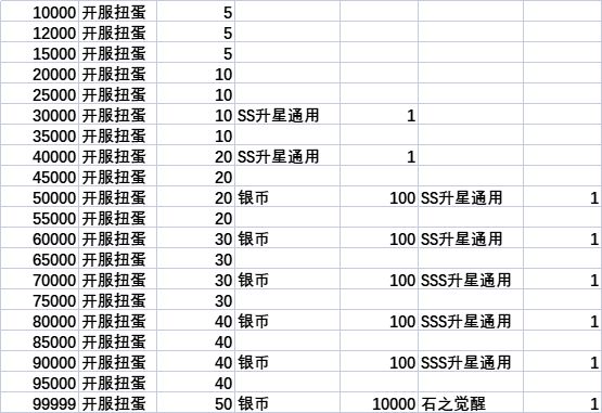 一星许愿树奖励:小型体力药剂*1、奶鸡饼干*30、SSS升星通用碎片*70