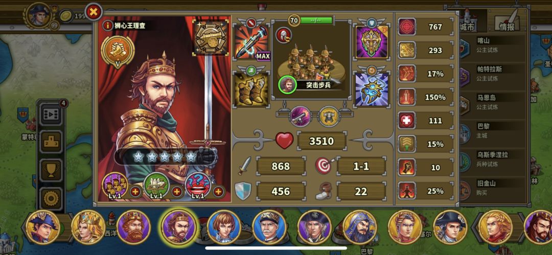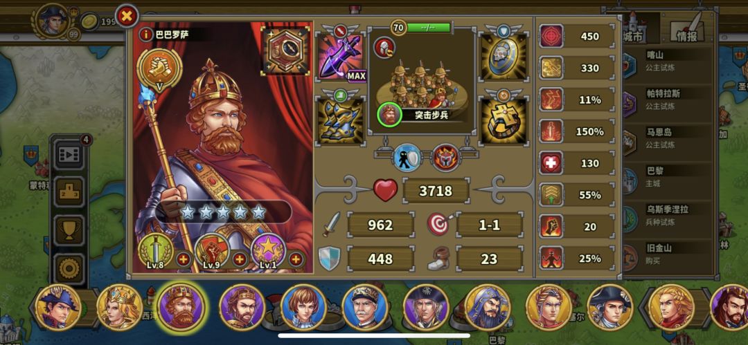 2.第五关需要尽量上亚瑟、或者用巴巴罗萨(等级领导力尽量要点到六级以上):亚瑟带删除枪。