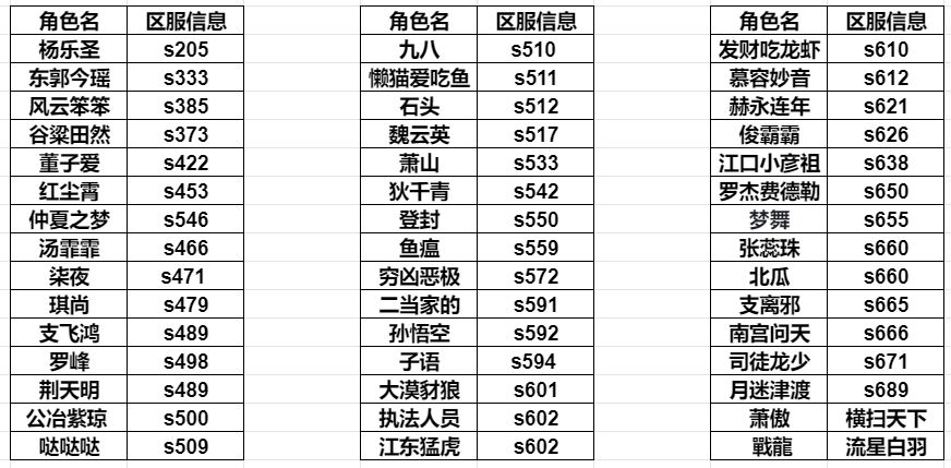 获奖名单一统计完毕,恭喜以下主公!奖励将于近日发放至邮箱内,请及时查收!感谢您的参与!下期活动,我们不见不散!