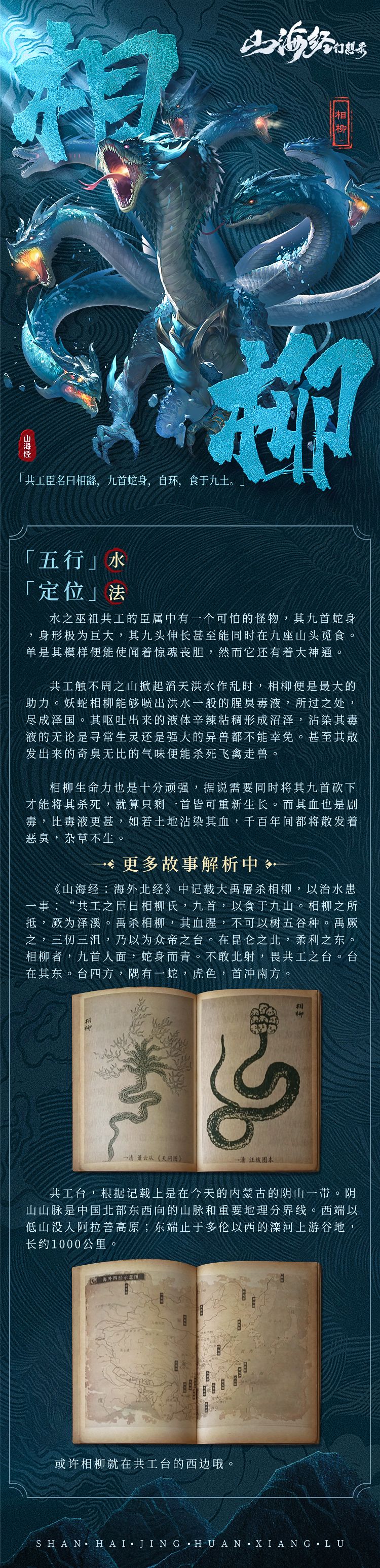 水之巫祖共工的臣属中有一个可怕的怪物,其九首蛇身,身形极为巨大,其九头伸长甚至能同时在九座山头觅食。