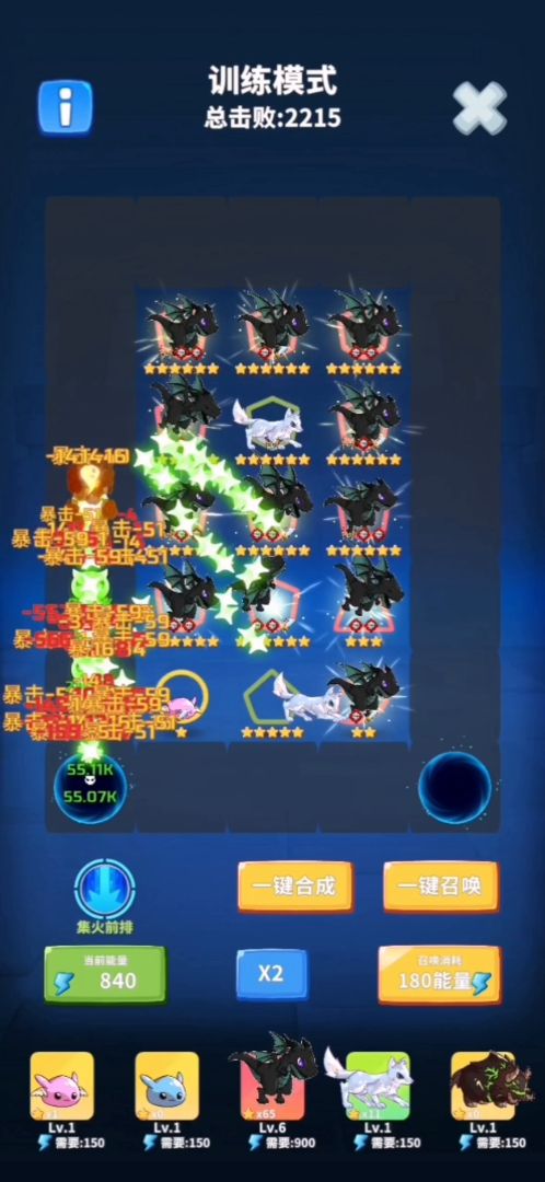 黑龙、蓝色史莱姆、粉色史莱姆、疾风狐、升级牛