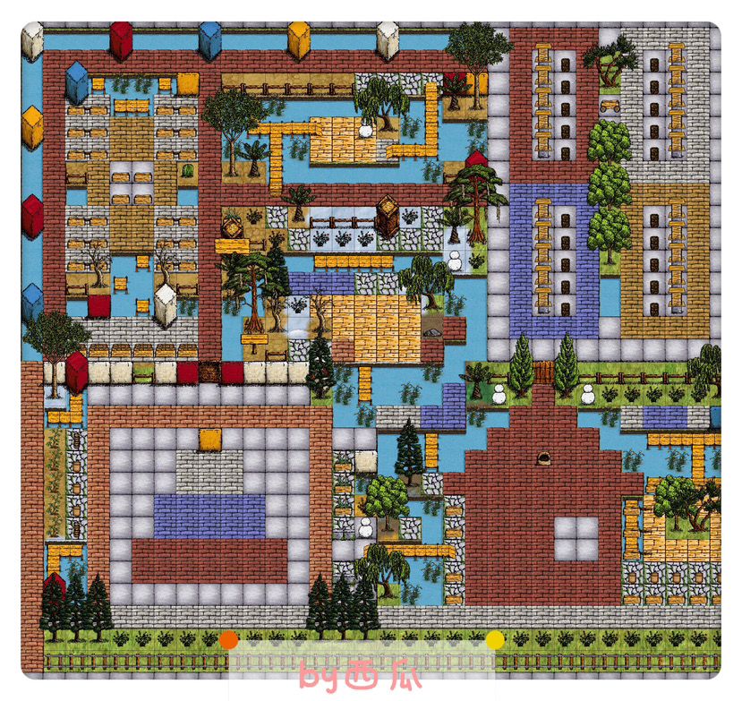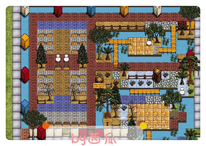 那时候刚刚更新砖和水渠,就打算铺一个房子形状。铺好后房顶想了很久不知道用什么颜色地板代替,总觉得颜色太多显得花哨。后面想到用水渠作为屋顶的蓝天。