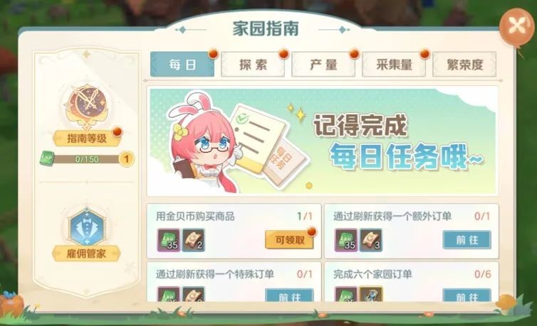 3、原有的家园每日任务,将会转移至家园指南中,奖励不受影响。