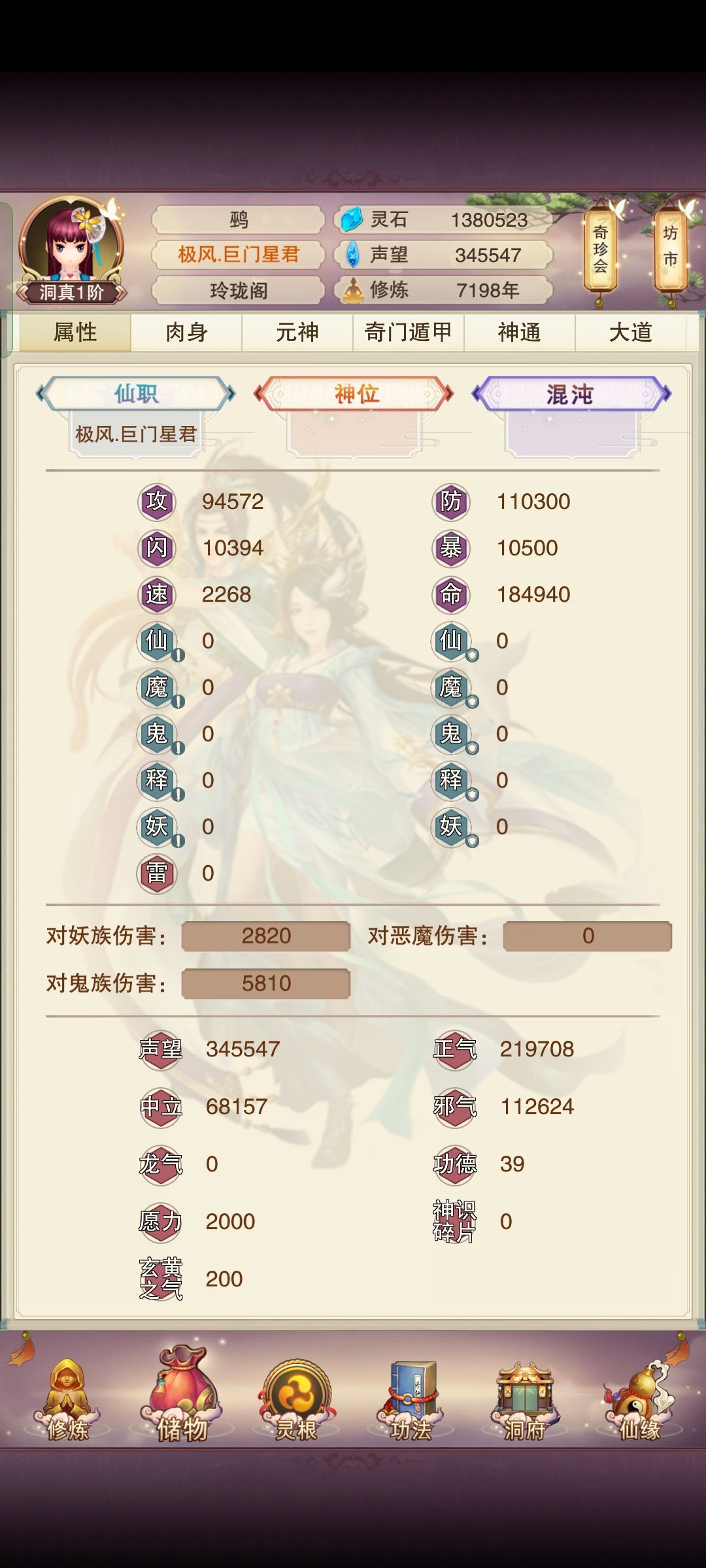 ,大乘1到洞真1属性没怎么变,一如既往的菜。底层修士可真的太难了![[嗒啦啦2_哭]](https://img.tapimg.com/market/images/8828585f790e1988f463101b34bca4cb.gif)