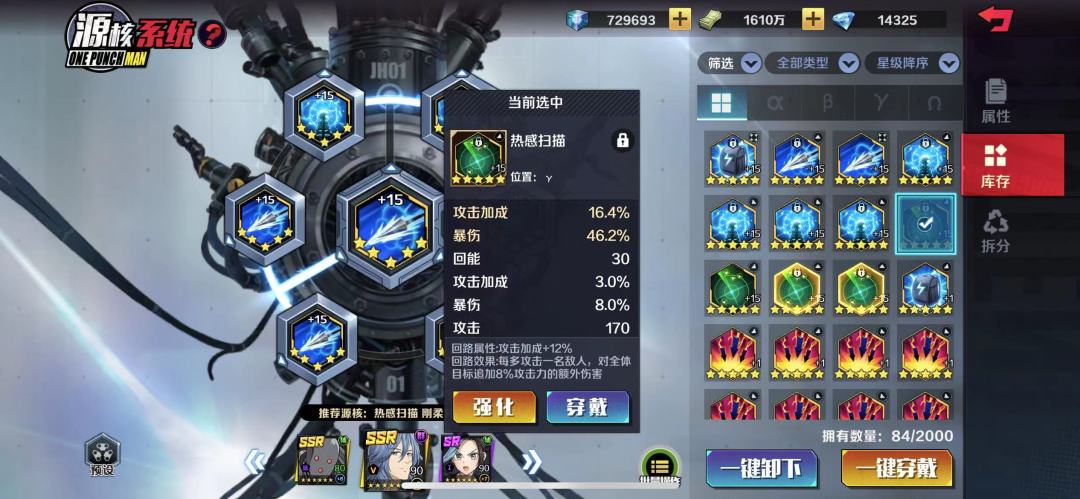 α位原核,我称之为攻击核源位,因为这个地方的核源主属性是可以具有两条进攻属性的,比如说攻击、暴击、攻击加成,这个位置不会出现爆伤加成。