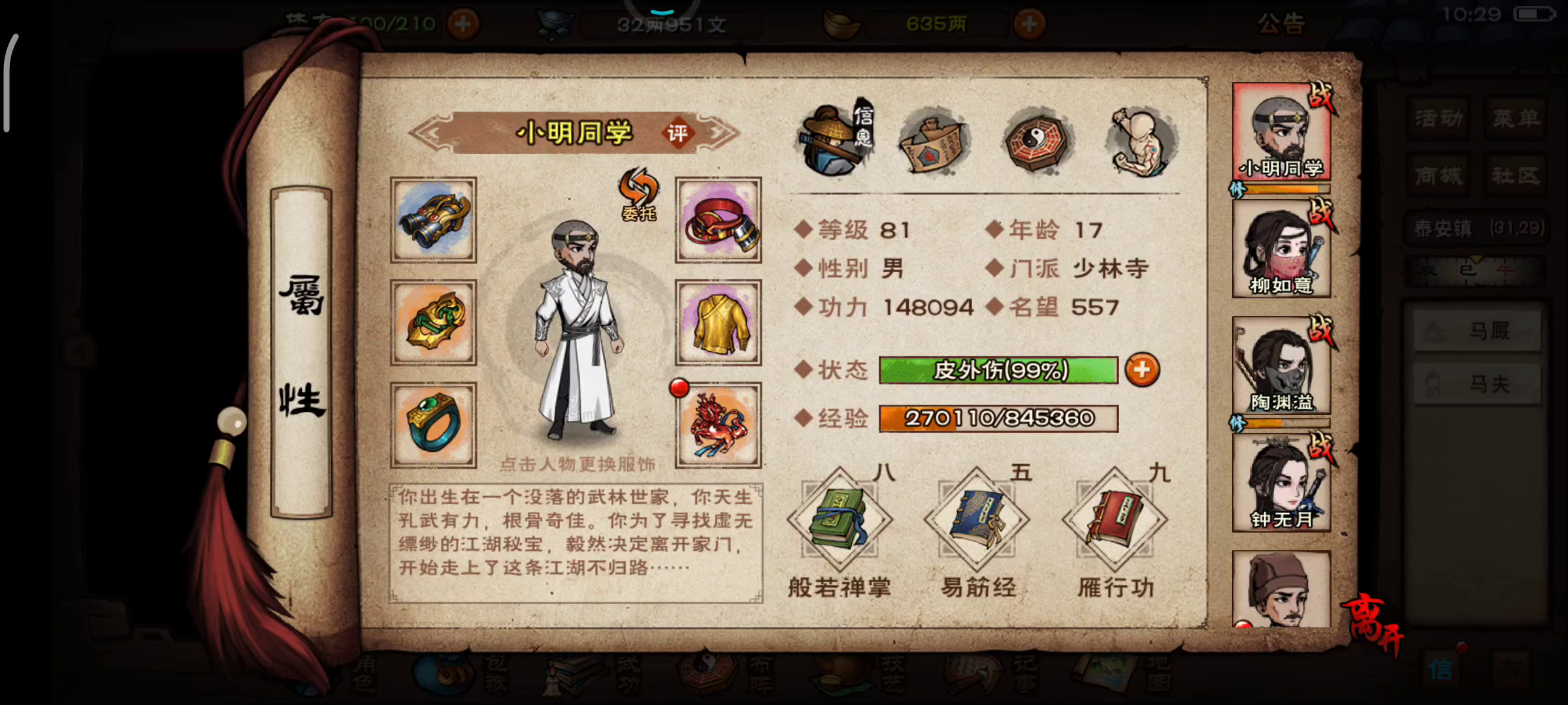 ③易筋经后续需要大量的虎骨,我现在不会去刷虎骨浪费体力,所以会卡一下这个节点。