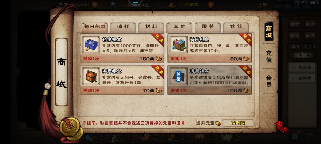 我计算了一下,准备买三天的功德铁劵(共300元宝)