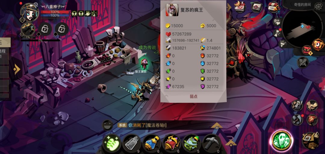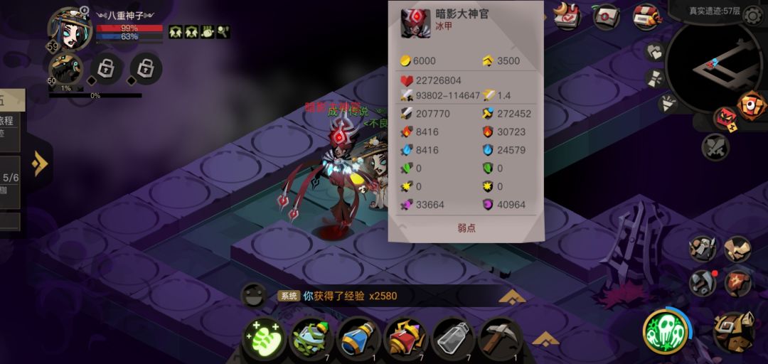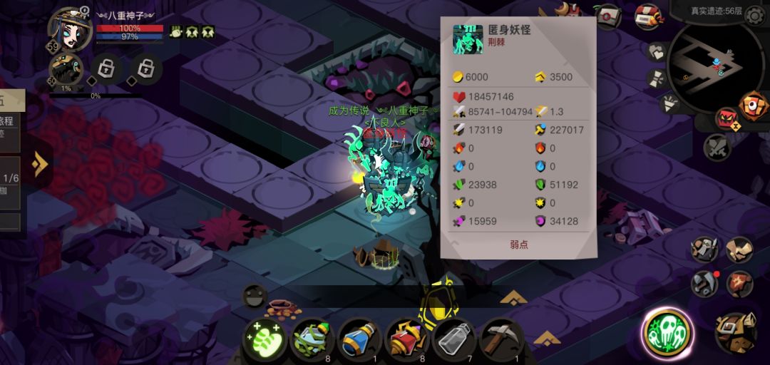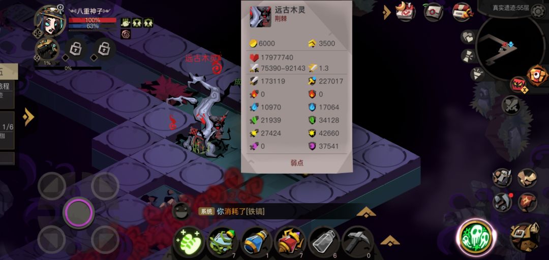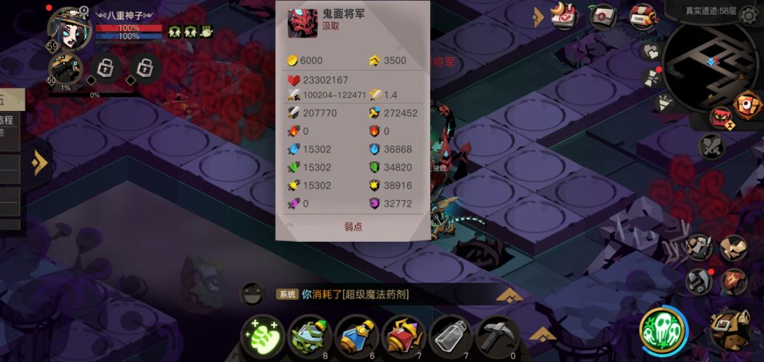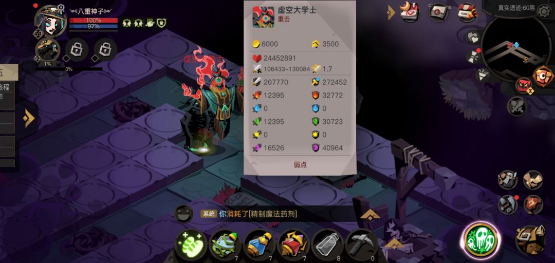 第六层,好了,重点来了,(我敢说没人比我更了解这东西的机制了前面帮别人过精六,不知道死了多少次,又看视频,攻略等等)法师克星,瓶子怪,它有20%的法术反伤,这就是为什么我说不到属性不要打的原因,魔够了,血不到,直接反死,开局会有沉默,用净化秒解,然后法灌加领主,加吞噬,然后,另一个机制是每减少20%血会大晕开盾抗,一定要卡在快要到80%时,开盾,开早了会被打掉,第二个晕在60%同理解,半血以下开魂器抗,抗晕,解沉默接下来就正常打,属性一定要到,这是前提,这一层过了,普六就基本过了,魂器,金身都可以交。不过我属性到了,就交了个魂器。![[嗒啦啦4_破防]](https://img.tapimg.com/market/images/e7a8b374540ede92a57ce1f447a9ec65.gif)