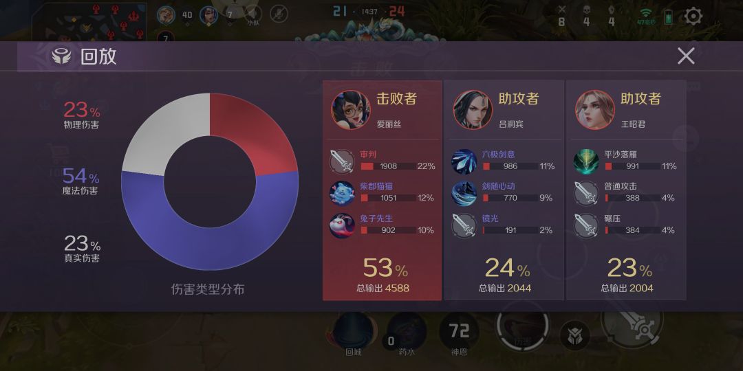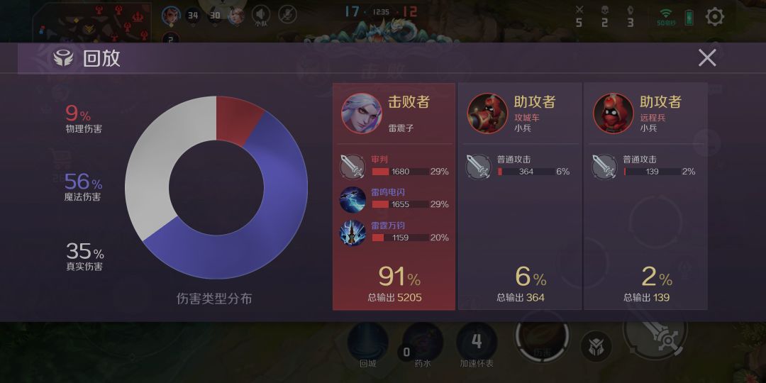 就拿这张图举例吧,当时我是14级9000经济,对面雷震子是13级7000经济,他突然冲过来把我秒了,而身上没有任何增伤buff。根据审判的计算公式,他的审判伤害应该是350+40*(13-1)=830,而伤害结算面板显示的是1680,刚好是双倍,这也就解释了为什么他在等级经济全面落后的情况下能将我瞬秒