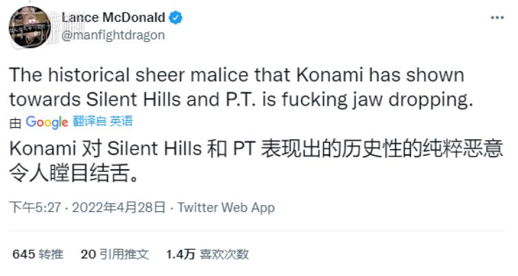 Lance McDonald是推特上首批转发这个“越狱”漏洞的玩家之一。McDonald是一名视频博主兼资深“岛学家”,近年来一直在挖掘《P.T.》不为人知的细节,偶尔也会在推特上抨击科乐美,痛陈其“对《寂静岭》与《P.T.》表现出的历史性的纯粹恶意”。