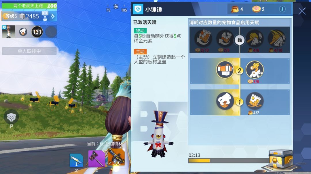 既可以自动增加稀金元素,也可以增强板材的血量再搭配一键搭建巨型堡垒的天赋能力