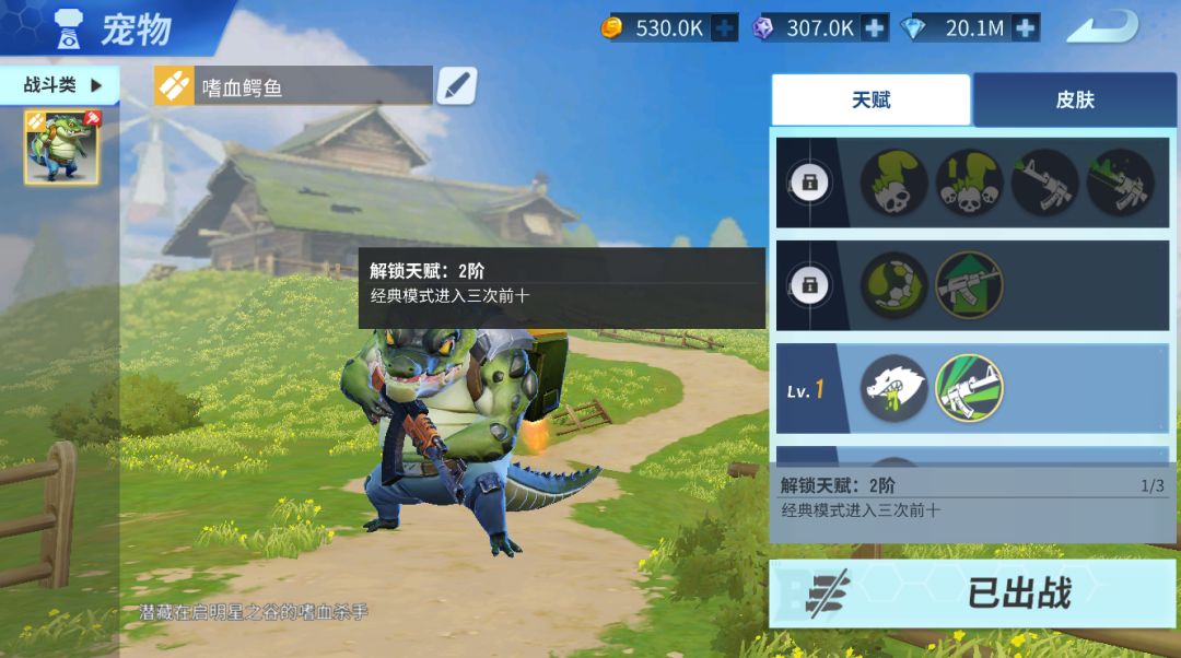 宠物分为四类:战斗类,保护类,收集类和其他类目前只开放了【战斗类】的嗜血鳄鱼