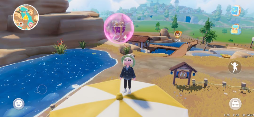 灯塔这个也会飘动,等泡泡到长凳那里再跳