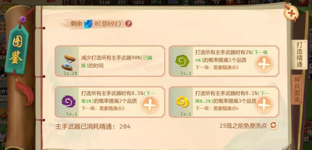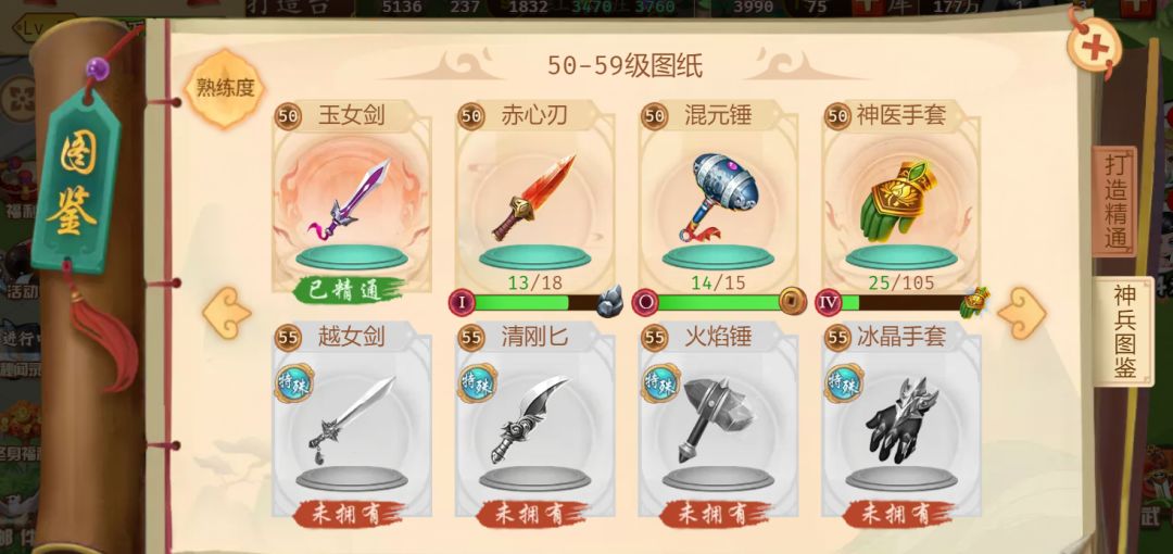 此外,前期的游戏装备迭代很快,所以不用在意一定要在前期打造出多少件装备或者解锁多少神兵图鉴,到后面还有更高级的神兵图鉴,届时再尝试全新的加点方案与打造模式也不晚哦~