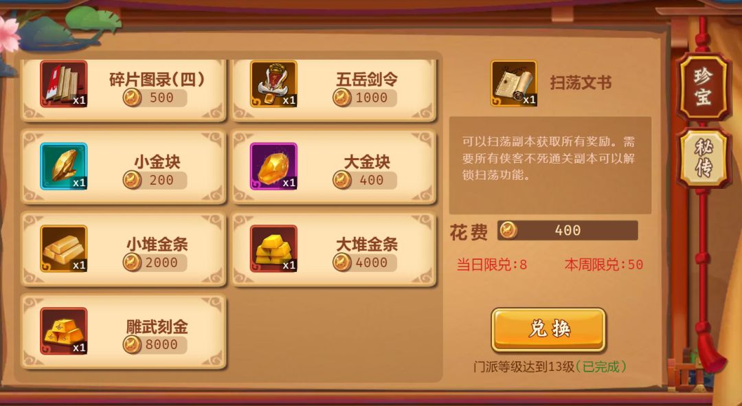 财富秘籍五:【高价值的“金块”道具】——可兑换大量铜币