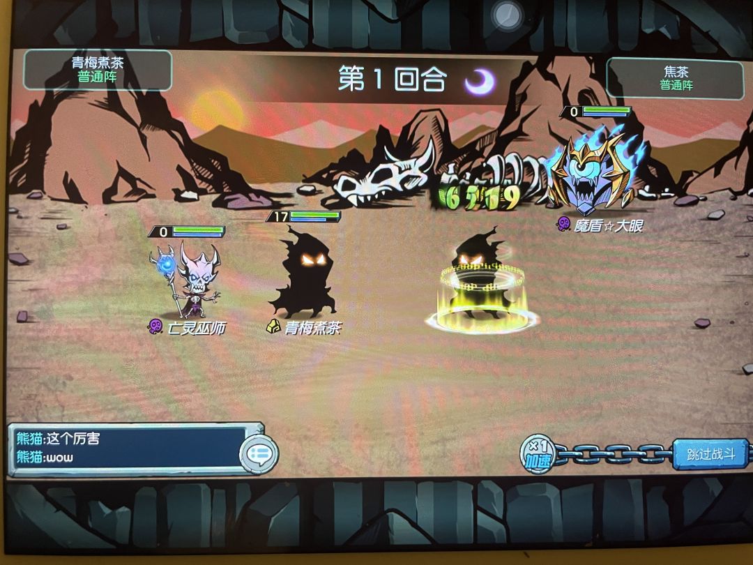 我这里用低系数的技能测试更加直观,阵法双方都用普通,白天夜晚在好友PVP中不影响。攻方是大眼,90系数的毒,守方亡灵巫师特防高一些。