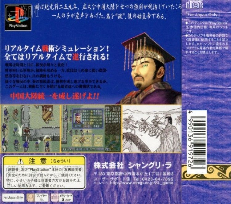另一边PS主机虽然从来没有在国内正式代理,但是却开始有了自己原创的中文游戏,首先出现是一款当年知名度非常低的作品,叫做《秦始皇帝》。这个游戏我原本以为是某个港台公司开发的,后来才知道开发商Shangri-La是位于东京的正经日本公司,本作以中国古代著名的秦始皇政治军事生涯为背景,玩家可以选择多位真实将军人物,执行生产、建设、训练、出征等任务,采用了新颖的半即时规则。《秦始皇帝》不仅显示界面全部中文,同时点击单位时还有中文语音,就像即时策略一样,这样的设计让本作成为了PS主机仅有的两款全中文原创游戏。