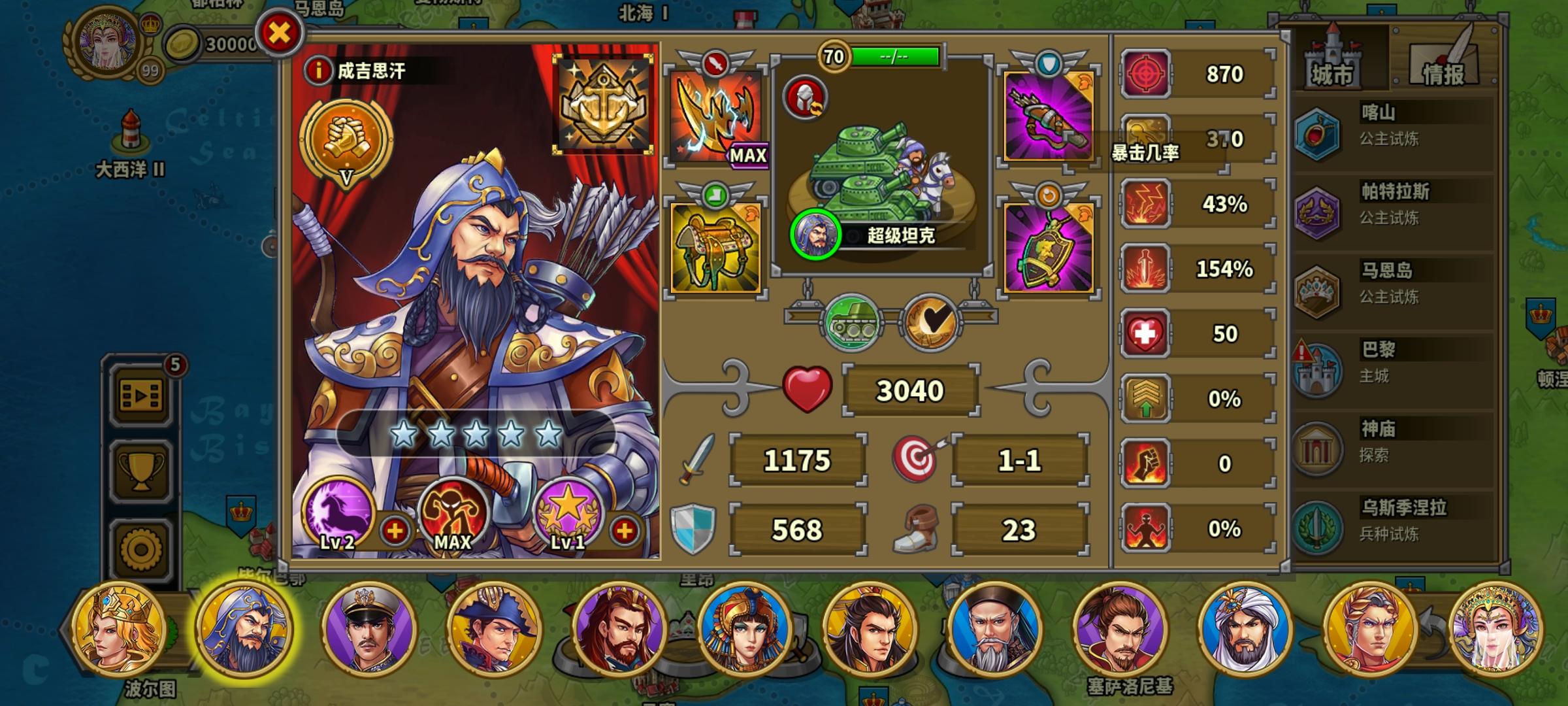 买个法典能加到53%暴击率,实际上43%发挥就很不错,守城前6回合刀刀暴击