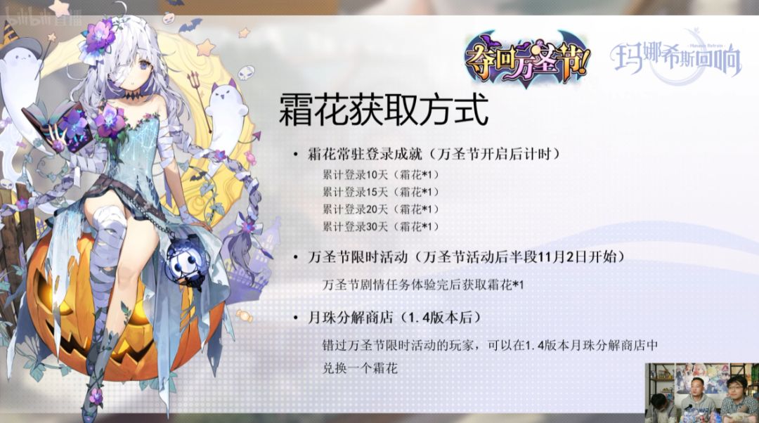 所以,如果有小伙伴要入/回坑,强烈建议不要错过万圣节活动送的最后一个霜花,不然等月珠商店换是很划不来的。(当然不满破就强度来说无所谓,怕强迫收集癖不是)