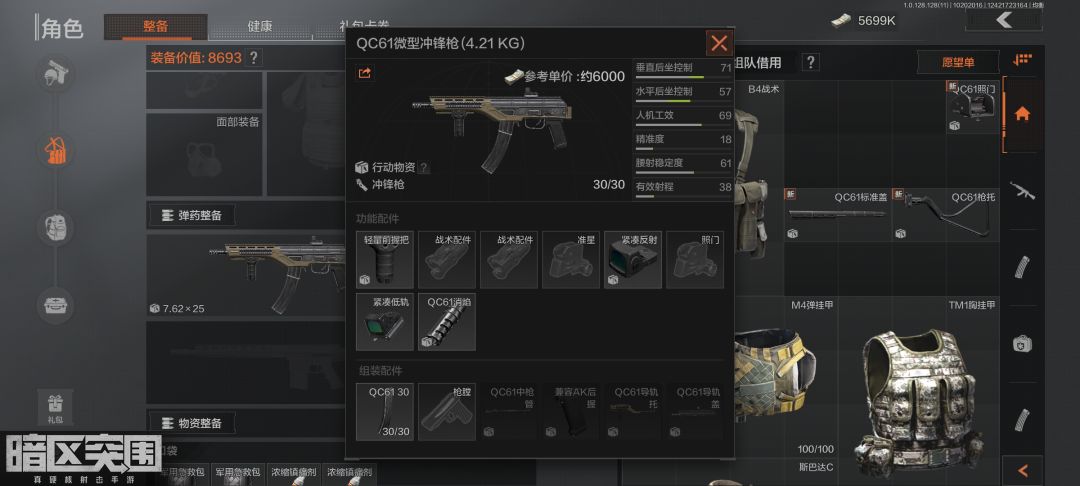 这样的改装不仅用较低成本改出了低后坐力的良好控制,轻便瞄具的良好视野和不俗的战斗能力;并且留下了战术配件和枪托的空槽,为之后对局中的改装留下了空间。