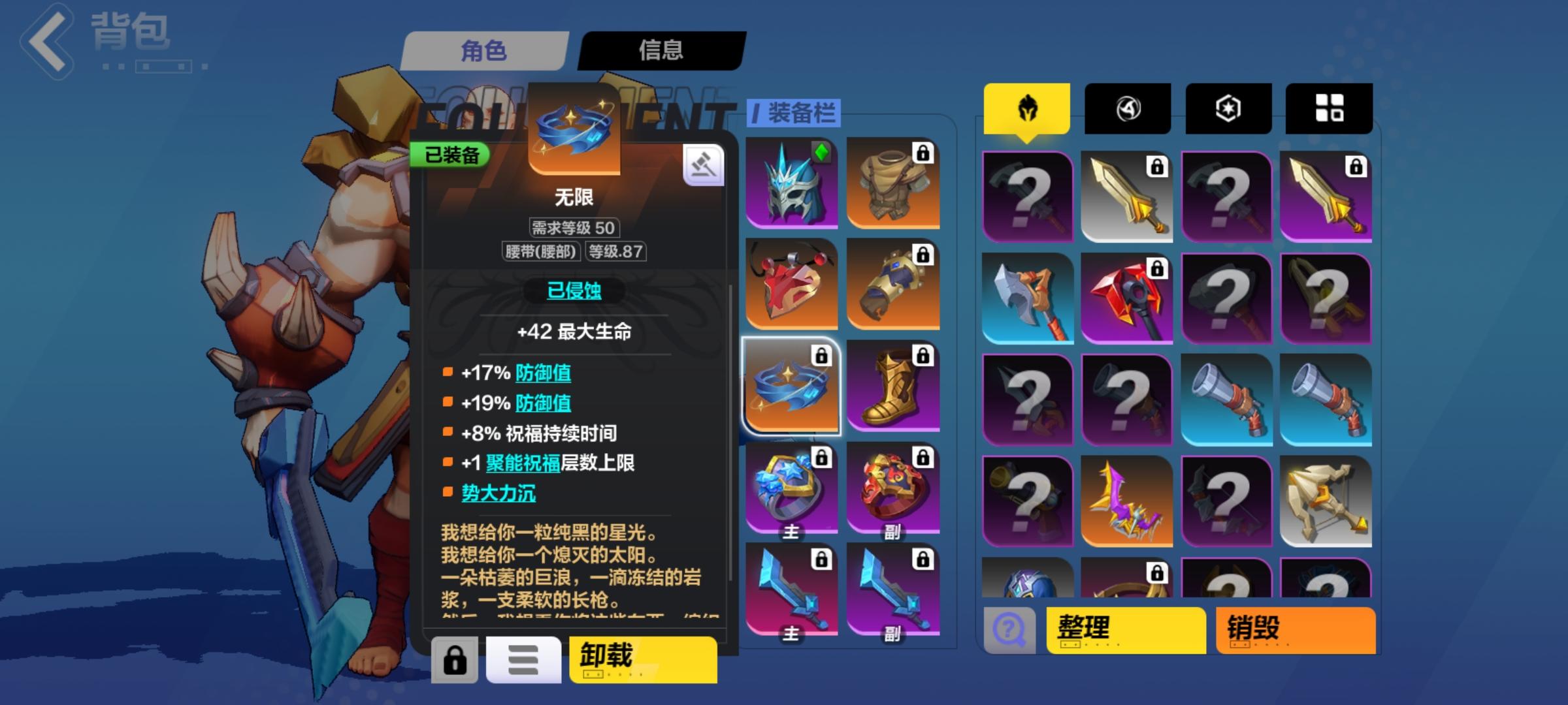 今天晚上又整了一波装备,然后小心翼翼的去试了一下三门,没想到居然能秒了,好有成就感,记录一波。玩这个游戏一周了,装备啥的都是偶尔搬搬砖搬出来的,走了挺多弯路多花了几百火才打成现在的装备,本来不开公牛的话只能打8000万,今天换了主手这把武器之后,终于能不开公牛和嗜血999了,然后这个双红的话是花了50买的,本来我以为是三个抗性全到75就能直接触发了就直接想也没想就买了,没想到是要把溢出的也算上,当时搞了半天,最后拼拼凑凑的终于把抗性凑成一样的了,不过成果也挺不错的,除了腐蚀抗性不行以外,别的都还可以,右边这把武器我甚至打了200多才打出来,裁决上头了到最后都没打出来,最后不得已收手了,下一个目标k8万界,等过了之后我就圆满了,四门也不是我该考虑的东西😂感谢tap果味软糖大佬的攻略,全程抄的他的攻略