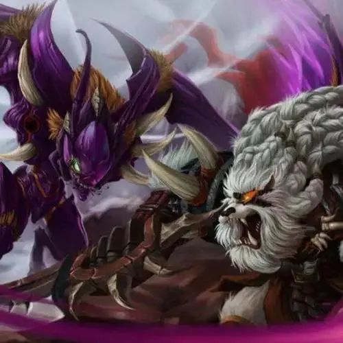 这俩应该也都认识,原版是铁血战士和异形,在电影来讲铁血战士和异形并不算对决,因为异形算是铁血战士成人礼的必经之路,但拳头把这个做到英雄里就变成了宿命对决,一个为了报瞎眼之仇,一个为了吃掉对方进化,实在是可喜可贺,可喜可贺啊